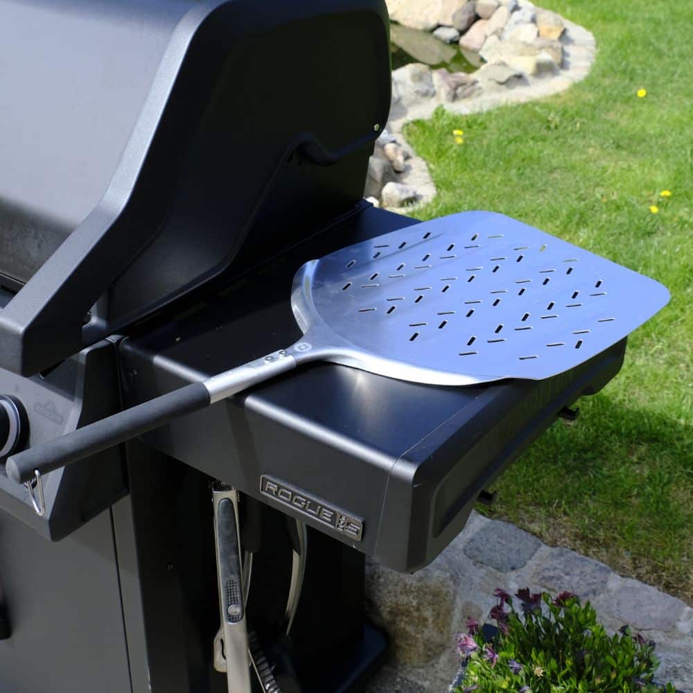 Spaden er fremstillet i robust rustfrit stål, som gør den både stærk og let på samme tid. Håndtaget er udstyret med skridsikkert greb, så du har fuld kontrol, selv når det går stærkt ved ovnen eller grillen.