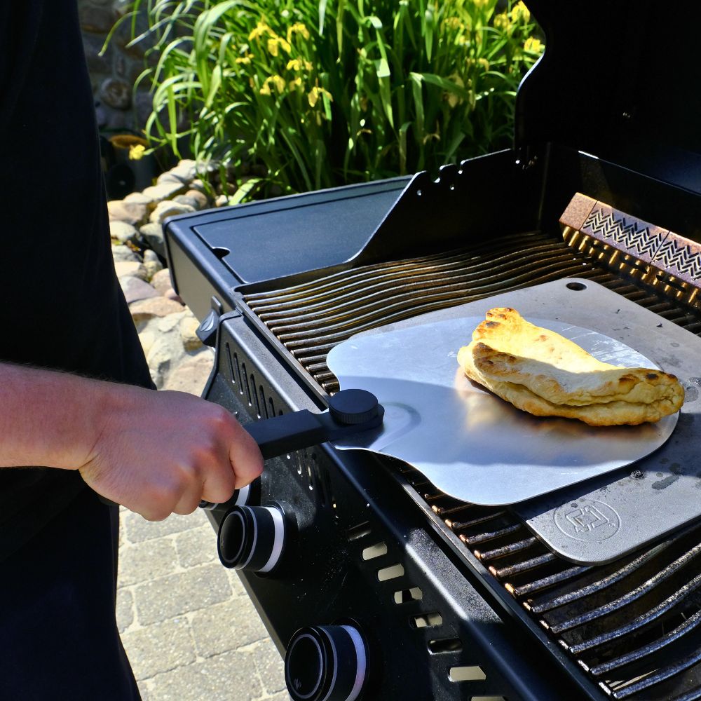 Uanset om du bager i din almindelige ovn, bruger en pizzaovn på terrassen eller smider pizzaen direkte på grillen, fungerer pizzaspaden perfekt. Den kompakte længde på 54 cm med udfoldet håndtag giver god rækkevidde uden at fylde for meget – hverken i brug eller i skuffen.
